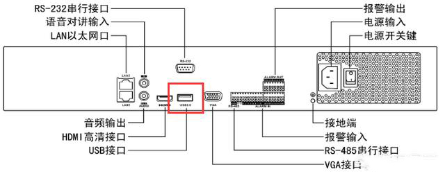 ①NVR中背后都有一个USB接口,可以插入移动硬盘或U盘进行备份,某一天的或者某一时间段的录像;