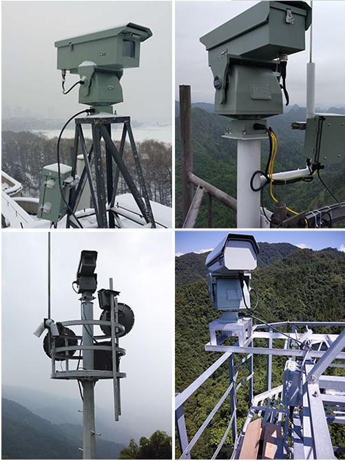 主要由热成像双目高清云台摄像机实现,对林场区域进行全天候监测,监测林场火情隐患,当有隐患发生时,通过前端摄像机进行火情识别,火点定位,气象信息采集并上传中心进行报警等。