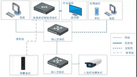 方案主要由人脸抓拍摄像机、海康威视智脑系列NVR(/FA)和智慧音柱组成,施工周期短,方案成本合理,安装后可大大节约各类安保人员的人力成本。
