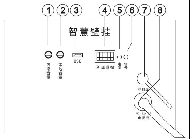 ①线路音量:用于调节直接外接音频播放时的音量大小,顺时针旋转调大音量。