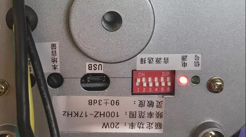 △ 图为音柱底部拨码音源选择处,拨码到1时,则播放对应的第一则自定义语音,同时拨码1和2时,不播放语音。